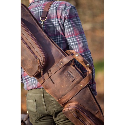 LEATHER by beth’s foderal til riffel, er håndsyet i et enkelt og råt 'look' i 3 mm uslebet Crazy Horse-læder. Vores 'ægte læder kan derfor vise de charmerende naturlige mærker, kun ægte læder har. BLIXEN riffel gunbag har messingringe og stærke og holdbare lynlåse. Foderalet er foret med imiteret lammeskind for at beskytte pistolen optimalt. Den specialdesignede 68 cm lange skulder- og bærerem af kraftigt læder er blevet udstyret med en tyk og blød skulderpude. Alle metaldele er lavet af messing.