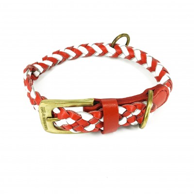 The dog collars and accompanying leashes are hand-braided in a classic round design