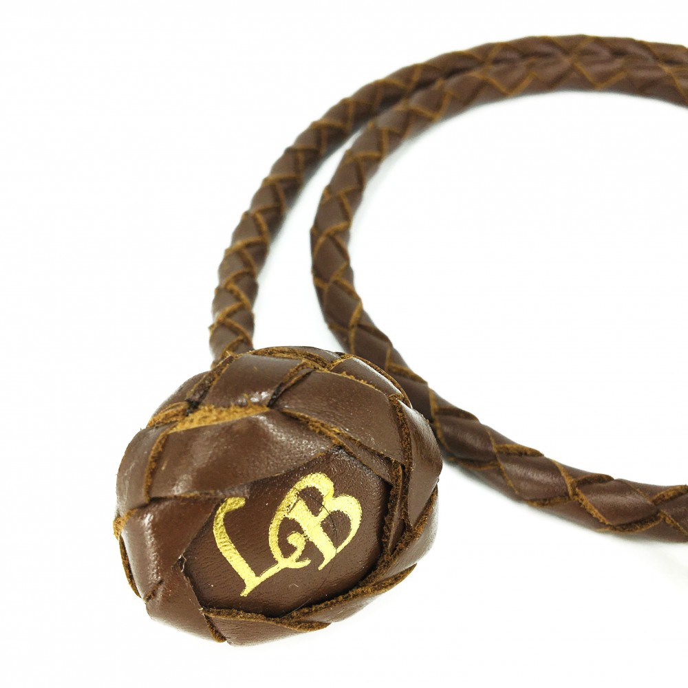 LEATHER by beth’s show slip lead is 100% handmade. Our round braided lead in durable Buffalo-leather is water repellent. The show lead comes with 2 "ON & OFF-stopper" (plus a reserve). The stops are delivered loose and can easily be mounted exactly where you want them. Either on both sides of the ring or only on one side. The stop can be tightened so that it does not slip on the line or loosened, so that it can be moved on the line. The stops are mounted with a screwdriver.